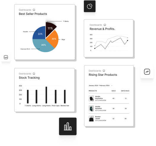 Smart Dashboard Analytics mengubah data transaksi menjadi real-time insights, membantu fashionpreneur maksimalkan pendapatan dan minimalkan kerugian.